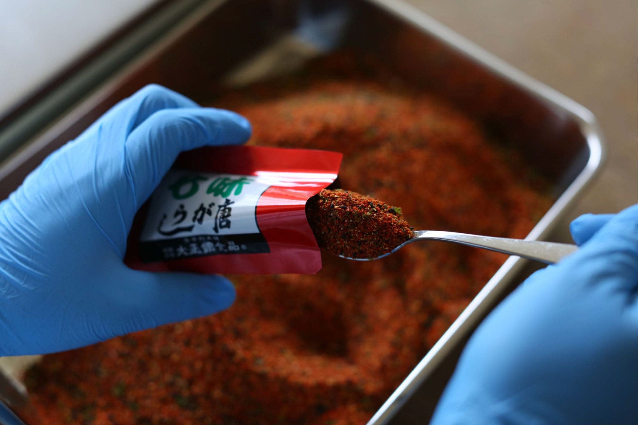 大正館食品は香辛料専門の粉末充填工場です。機械充填を始めた昭和四十五年以来、ナショナルブランドの食品やテイクアウトのお弁当などに添付されるわずか0・1~20.1~2グラムほどの小袋の粉末充填は弊社の強みであり、これまで膨大な納品実績を積み上げてまいりました。商品に付属する調味料やシーズニングのこだわりが商品本体の価値を左右する時代です。徹底した品質管理のもと、できる限りお客様のご要望に合ったものを、最適なパッケージングで、小ロット短納期をモットーに対応いたします。どうぞお気軽にお問い合わせください。