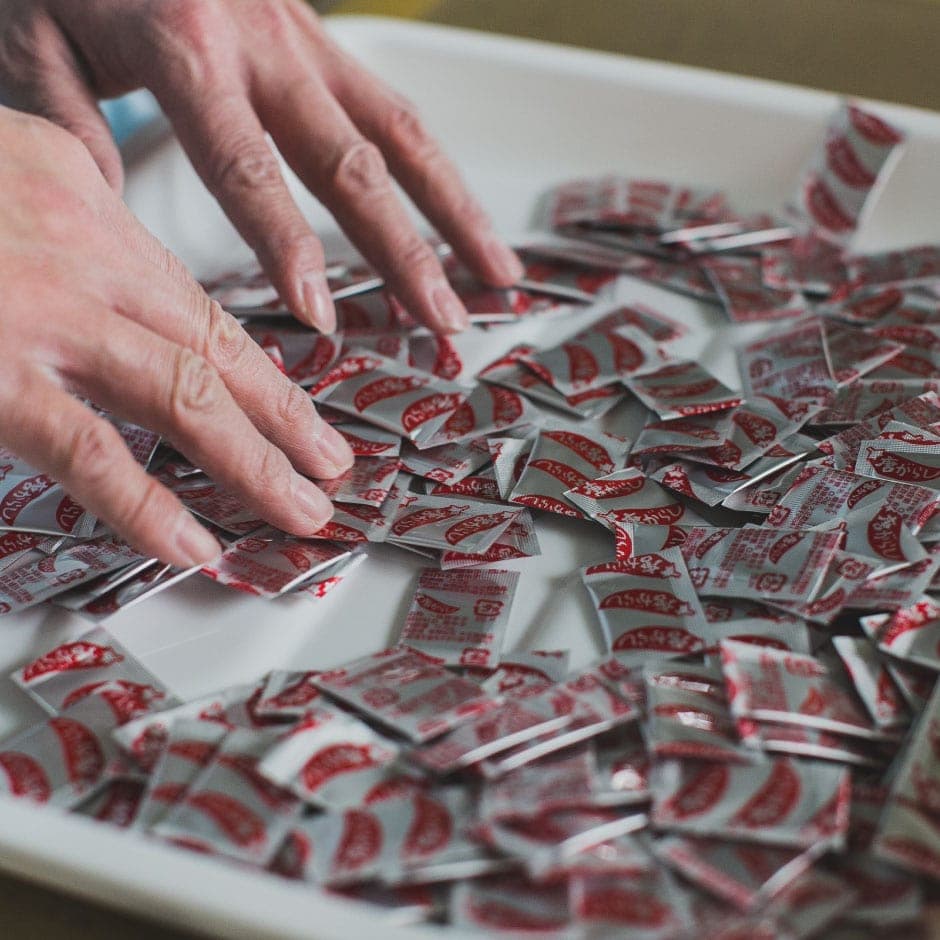 お客様からご指定いただいた原料を自動充填機により0・1~20.1~2グラムほどの小袋詰めとすることも可能ですし、数グラムから数百グラム、数キロまであらゆる容量サイズでパッケージすることが可能です。